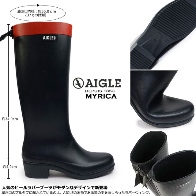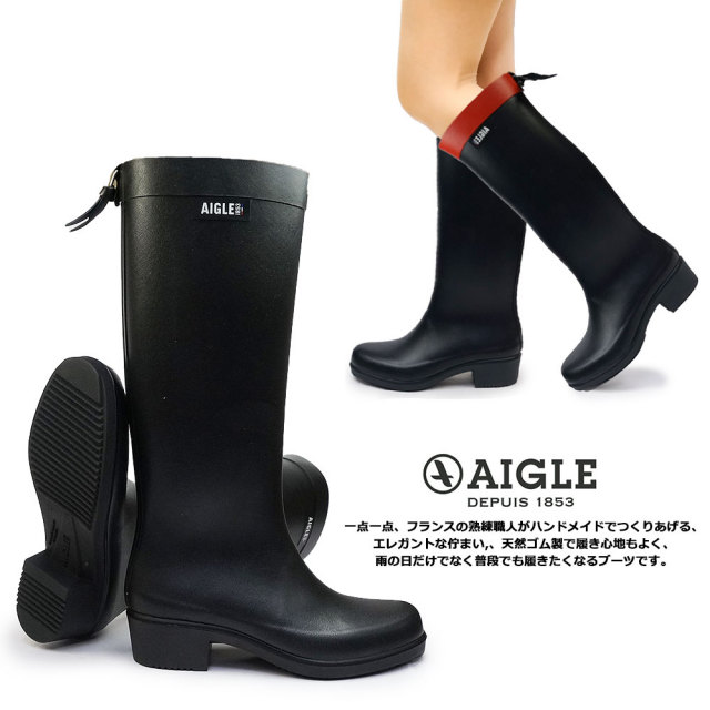 エーグル レインブーツ レディース ミリカ 長靴 黒 ネイビー ブラック マリン ラバーブーツ エレガント おしゃれ