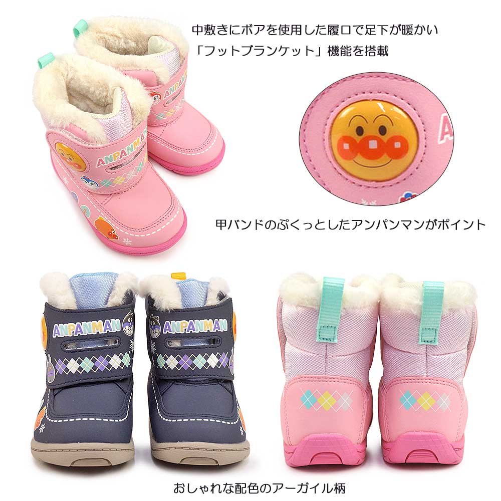 あんぱんまん 冬用 ウインターブーツ スノーブーツ ピンク ネイビー 公園 濡れない それいけ!アンパンマン チャイルド 女の子 男の子 プレゼント ギフト