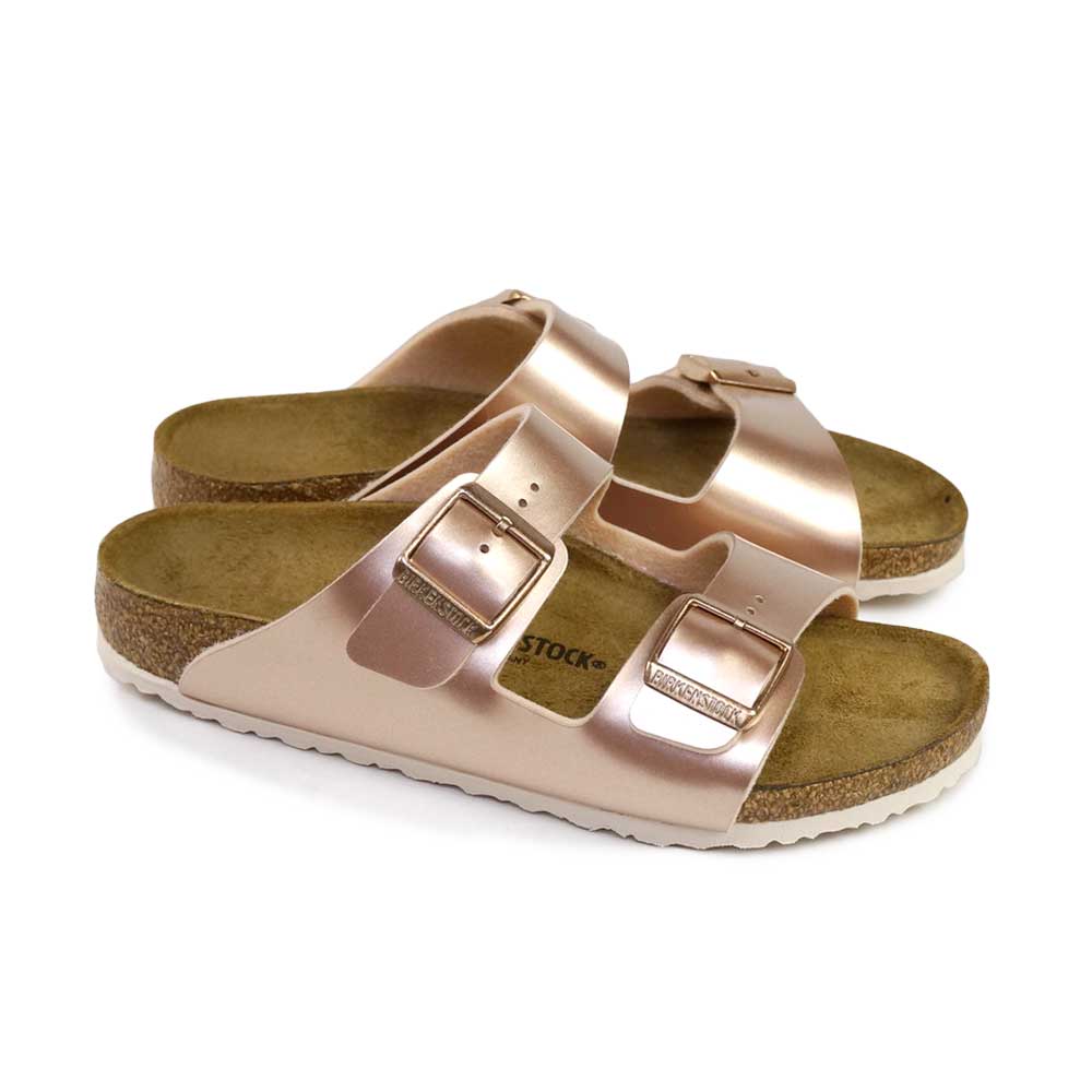 このArizona/アリゾナにはリアルレザーのような特殊加工のされたBirko-FlorR素材が使用されています。軽くてお手入れのしやすく、どんな場面でも大活躍。脱ぎ履きもスムーズで、甲のベルトでフィット感の調節もできる1足です。足が小さめの女性も履けます。