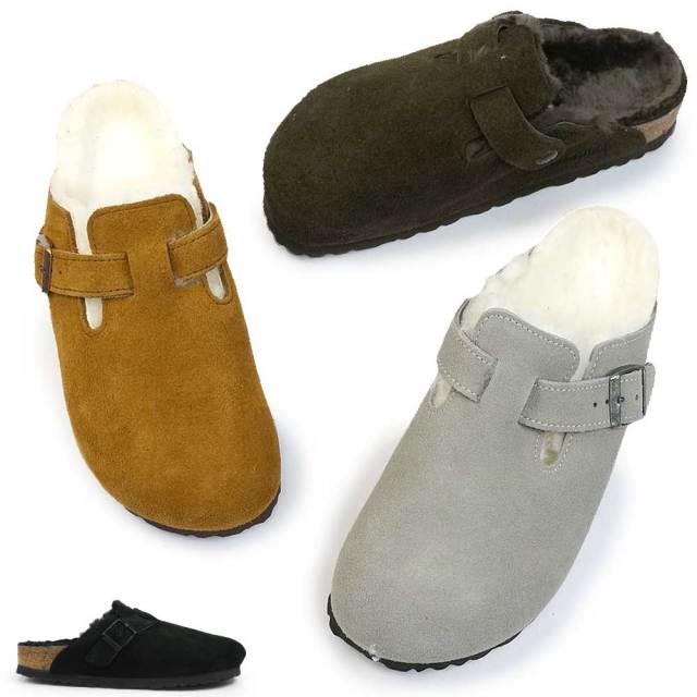 個性的でいたいあなたに!今回ビルケンシュトックの定番クロッグ、Bostonが超高級スエードレザーで飾られたホカホカのモデルで登場です。天然ラムスキンボアで覆われた中敷きとストラップのライニングが、おしゃれに、暖かく足元を包みます。幅、サイズ感・・・ナロー幅(幅狭)。さらにライニングと中敷きにボアを貼り付けているので通常のボストンより小さめの作りになります。