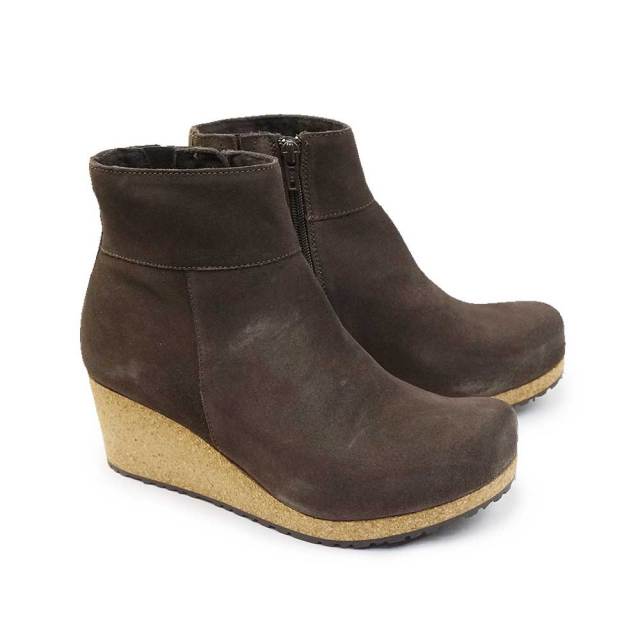 このコンパクトなウェッジアンクルブーツEbbaはPapillioが初めてデザインした数少ないシューズの一つです。脚をほっそり長く演出してくれるウェッジソールがフェミニン感をたっぷりアピールしながら、シンプルなデザインと安心のホールド感。耐摩耗性に優れたアウターソール。アッパーには上質なスエードレザー使用しています。