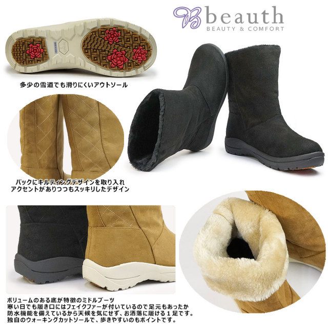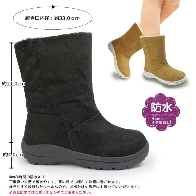 寒い日でも履き口にはフェイクファーが付いているので足元もあったか