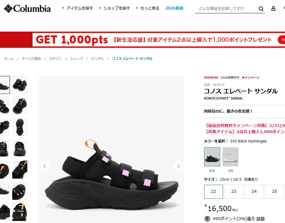 肉厚ソールで存在感がありながら、安定感のある履き心地に仕上げたコロンビアのサンダル。反発性に優れたミッドソールとグリップ力のあるアウトソールで、