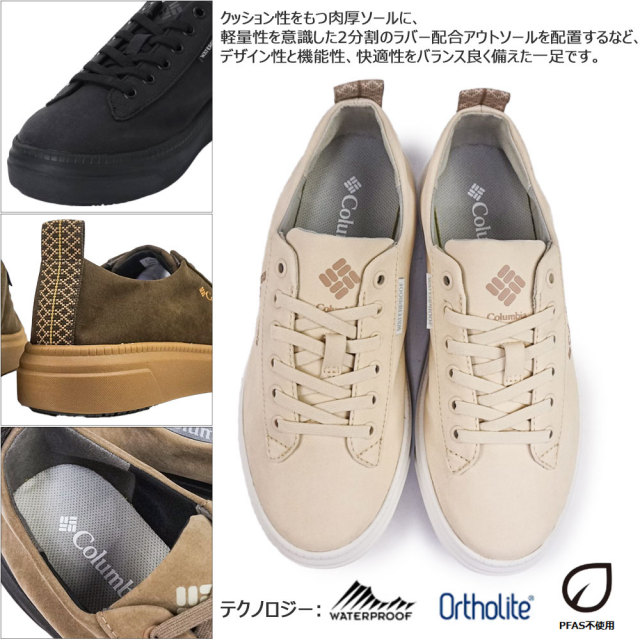 Columbia Myleage Rain II WATERPROOF【特徴】 ・水の侵入を防ぐ「ウォータープルーフ」 ※完全防水ではありません。防水フィルムを使い浸水を防ぐ構造になっていますが使用条件により、水が侵入する場合があります。 ・長時間使用でも快適な履き心地を実現したインソール「オーソライト」 ・ストレッチ性のあるシューレース ・今シーズンはクッション性を高めた肉厚ミッドソールにアップデート ・防滑配合のラバーを前後2分割にしたアウトソールで軽量性を持続