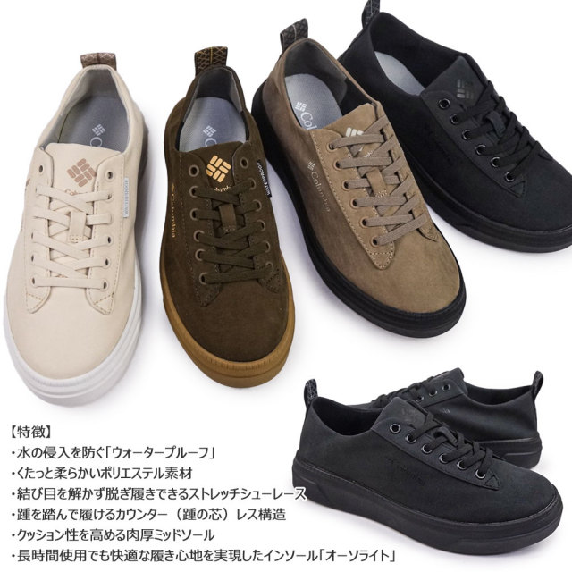 晴れの日も雨の日も、快適にお洒落を楽しむ女性のために開発した、軽量で履き心地抜群の防水ローカットシューズ。毎シーズン好評のくたっと柔らかいポリエステルアッパーに、ラクに脱ぎ履きできるストレッチ性のシューレースを装備。さらに、カウンター(踵の芯)レス構造の採用で、踵を踏んで履けるのも魅力のひとつ。抜群のクッション性をもつ肉厚ソールに、軽量性を意識した2分割のラバー配合アウトソールを配置するなど、デザイン性と機能性、快適性をバランス良く備えた一足です。