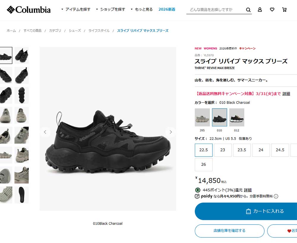 存在感のあるバブルソールが夏場の快適な足元をサポートします。