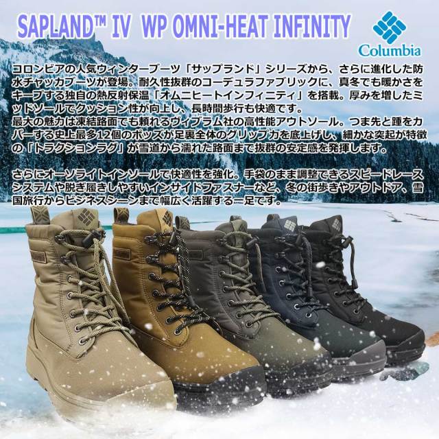 Columbia SAPLAND 4 WP OMNI-HEAT INFINITY ・ウォータープルーフ構造で雨雪の侵入を防止