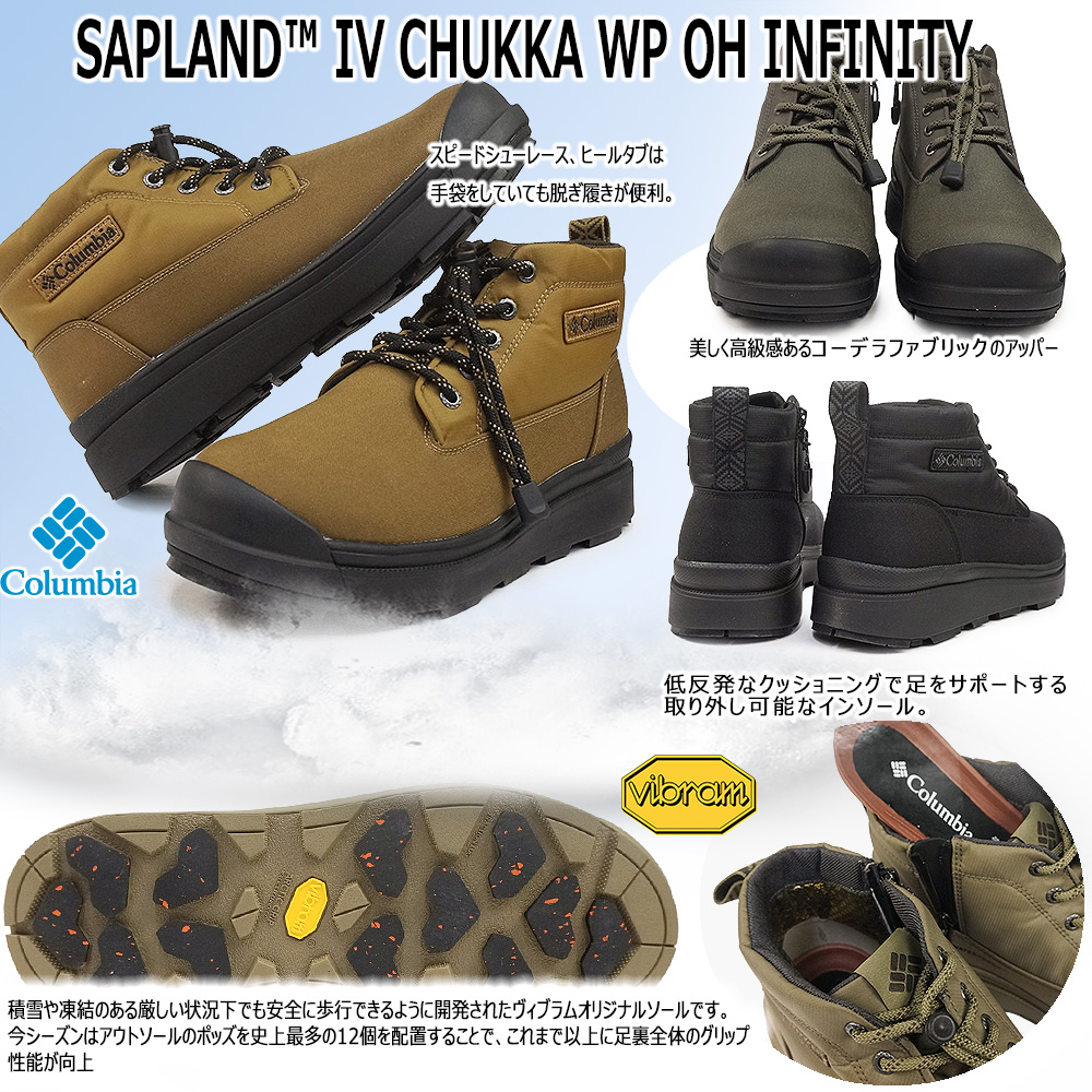 SAPLAND 4 CHUKKA WP OH INFINITY雪道や凍結路でも優れたグリップ力を発揮するサップランドシリーズより、さらに進化したチャッカブーツが登場。 耐久性に優れたコーデュラーファブリックで仕上げたアッパーは、ウォータープルーフ仕様で雨や雪の侵入を防ぎます。ライニングに用いた独自の熱反射保温機能が、真冬でも暖かな履き心地を実現。今シーズンからミッドソールの厚みを増すことでクッション性を強化。さらに、当シリーズ最大の特徴であるアウトソールには、凍結路面に強いヴィブラム社のオリジナルソールを採用し、つま先と踵部もカバーする史上最多の12個のポッズを配置。また、ポッズが僅かにせり出し、これまで以上に足裏全体のグリップ性能が向上。ラバー部分も、細かな突起が特徴のヴィブラム「トラクションラグ」へのアップデートにより、路面コンディションを問わず、安定した歩行と高いトラクションを実現します。 【特徴】 ・コロンビア独自の熱反射保温機能「オムニヒートインフィニティ」 ・ウォータープルーフ ・長時間使用でも快適な履き心地を実現したインソール「オーソライト」 ・積雪や凍結のある厳しい状況下でも安全に歩行できるように開発されたヴィブラム「アークティックグリップ オルテライン」 ・安定した歩行と高いトラクションを発揮する、ヴィブラム「トラクションラグ」 ・オーセンティックなチャッカブーツ ・耐摩擦性、耐久性に優れたコーデュラファブリックのアッパー素材 ・手袋をしたままでもフィッティング調整が簡単なスピードレースシステム ・脱ぎ履きしやすいインサイドファスナー ・足当たりがソフトな履き心地 ・より広く足の指先を覆い保護する、硬質ラバー プロテクションパーツ ・今シーズンは厚みを増したミッドソールでクッション性を強化 ・今シーズンはアウトソールのポッズを史上最多の12個を配置することで、これまで以上に足裏全体のグリップ性能が向上 ・ウィンターシーズンのアウトドア、日常、ビジネス、スノーエリアへの旅行などにおすすめ