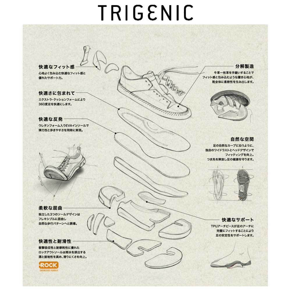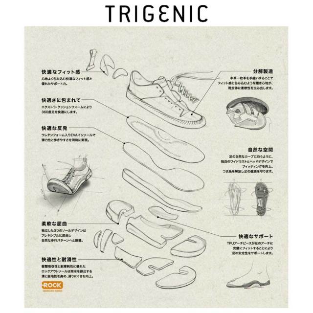 名前の由来は、1883年にクラークスが定めた靴の健康と快適さを定義するHygienic(ハイジェニック)コンセプトと3分割構造のアウトソールから3を意味するTri(トライ)を組み合わせています。