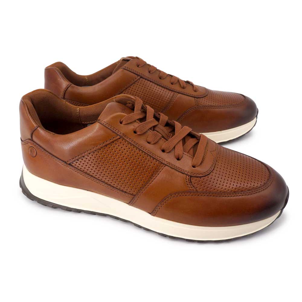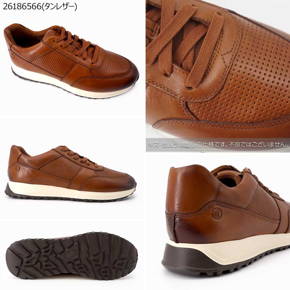 上質なレザーにパンチング加工を施し、見た目の高級感と通気性を両立したローカットスニーカー。軽量設計で足取りも軽く、長時間の外出でも快適に過ごせる一足です。