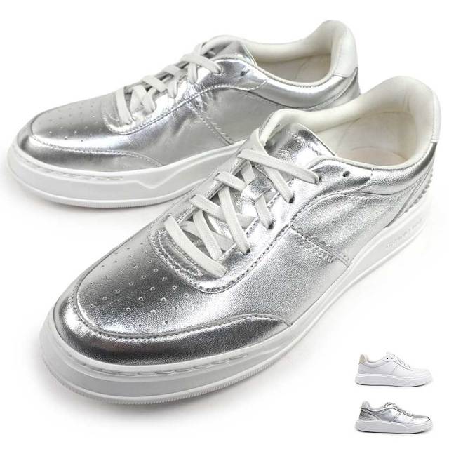 カジュアル、レザースニーカー、おしゃれ、シルバースニーカー、白スニ