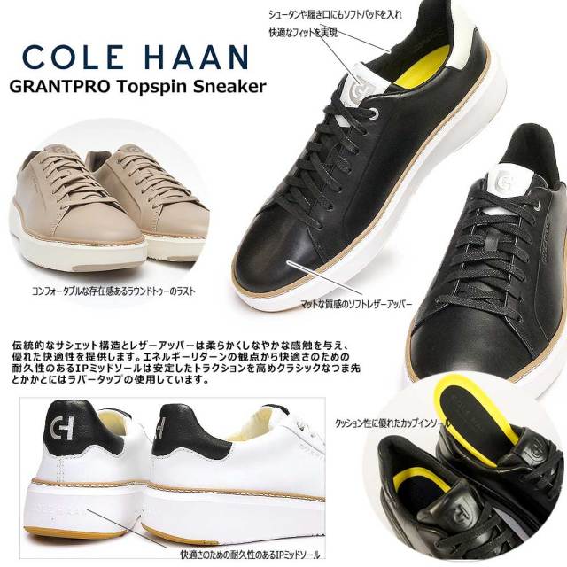 ワードローブに欠かせないコートスニーカー、スタイリッシュな着こなしにもマッチさせるなら洗練されたデザインと履き心地にこだわったものを選びたいですね。グランドプロのトップスピン スニーカーなら、クラシックなルックスはもちろん、トップスピンコレクションの特徴でもある超軽量レザーのアッパーとミッドソールに装備されたグランドフォームの高い機能性による快適さも抜群です。