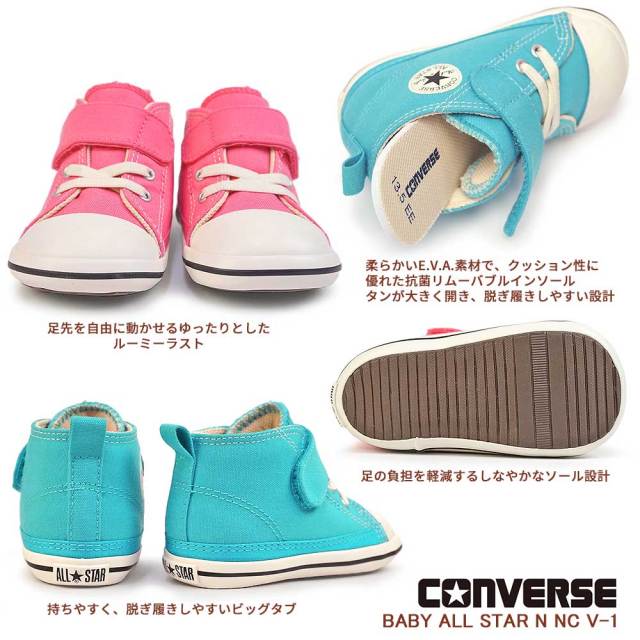 ベビー オールスター Nのカラーアレンジモデル。華やかなネオンカラーのアッパーに、モノクロのアンクルパッチで仕上げたモデル。