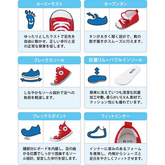 ・柔らかいE.V.A.素材で、クッション性に優れた抗菌リムーバブルインソール