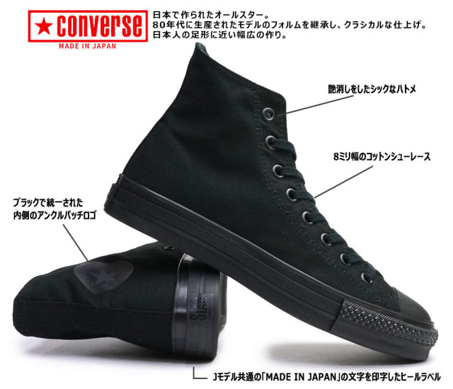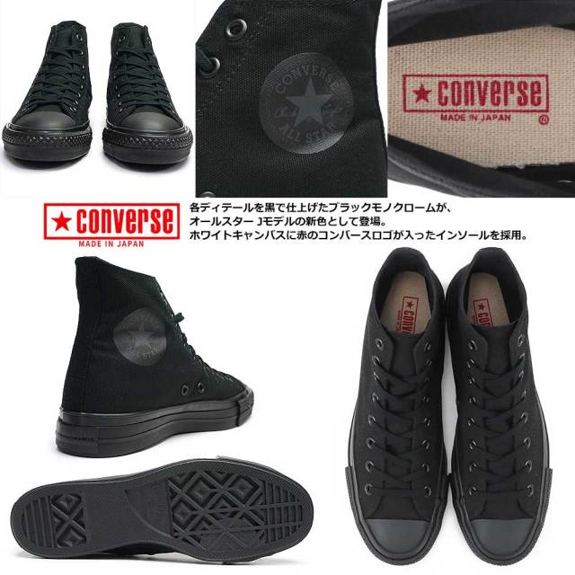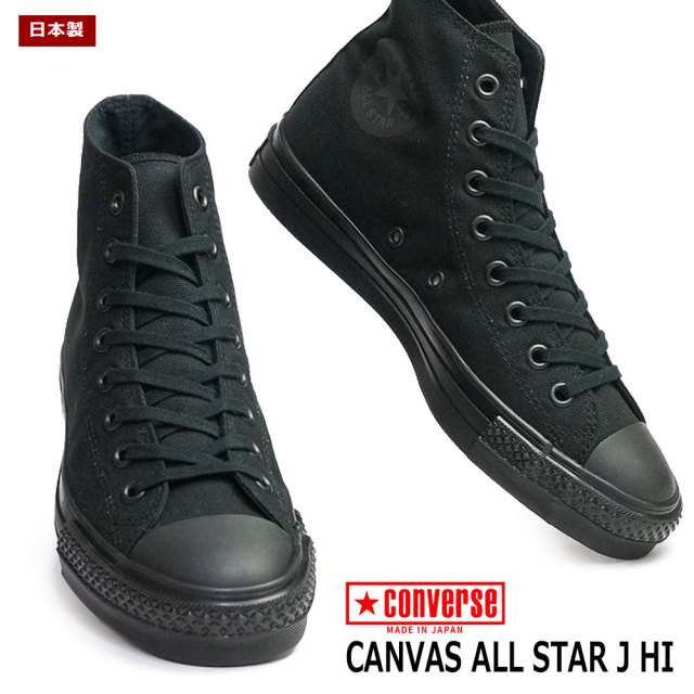 コンバース キャンバス オールスター J HI 日本製 スニーカー レディース ハイカット ブラックモノクローム 黒 モード系 クラシック レースアップ シック モノトーン メンズ プレゼント ギフト タウンスニーカー 通勤 通学 普段使い