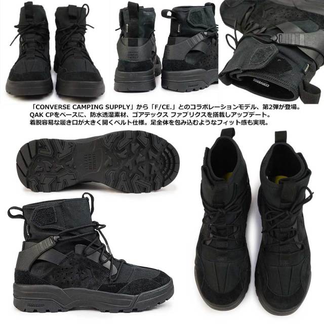 「CONVERSE CAMPING SUPPLY」から「F/CE.」とのコラボレーションモデル、第2弾が登場。QAK CPをベースに、防水透湿素材、ゴアテックス ファブリクスを搭載しアップデート。