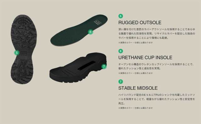 素材 アッパー:コットン、スエード、ヌバック ミッドソール:圧縮E.V.A. アウトソール:ラバー