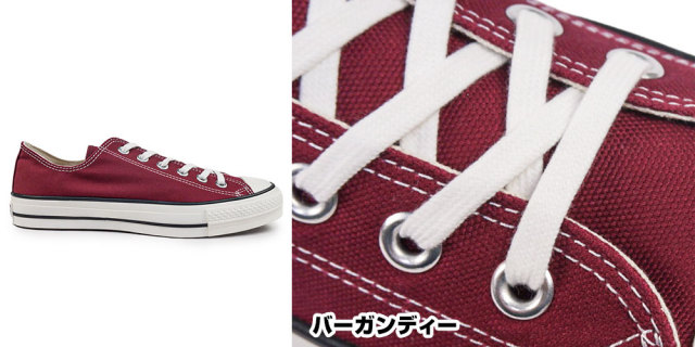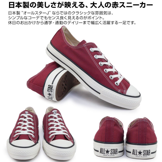 深みのあるバーガンディーが、いつものスタイルを一気にこなれた雰囲気に引き上げる日本製オールスターJ。