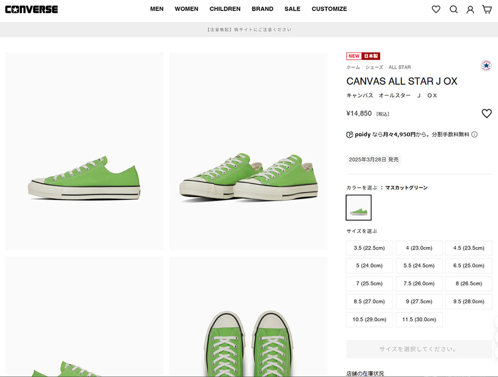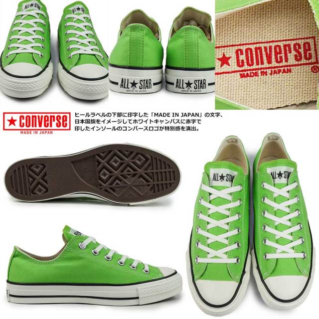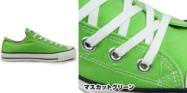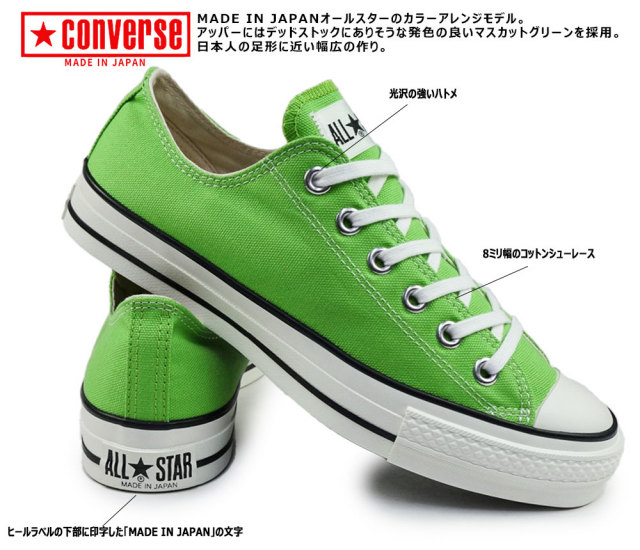 スニーカー オールスター コンバース メンズ レディース ユニセックス 日本製 MadeinJAPAN レトロ調 ローカット レースアップ 国産 シューレース 靴紐 紐靴 マスカットグリーン 黄緑 モード系 クラシック