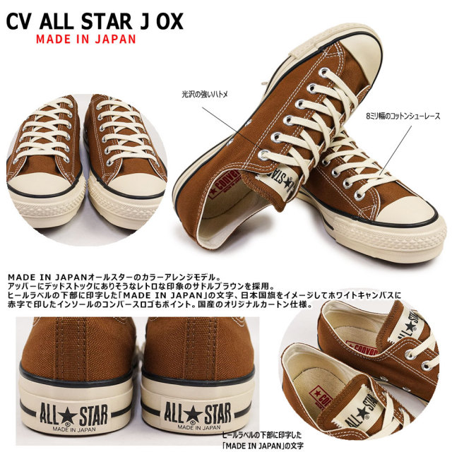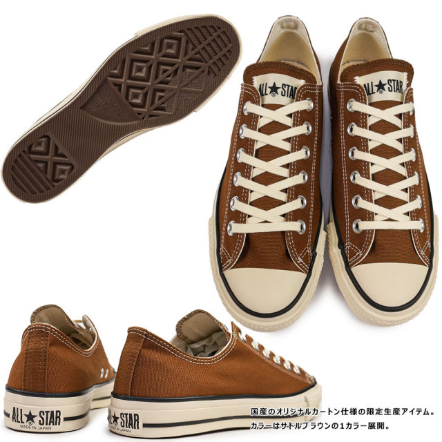 MADE IN JAPANオールスターのカラーアレンジモデル。アッパーにはデッドストックにありそうなレトロな印象のサドルブラウンを採用。