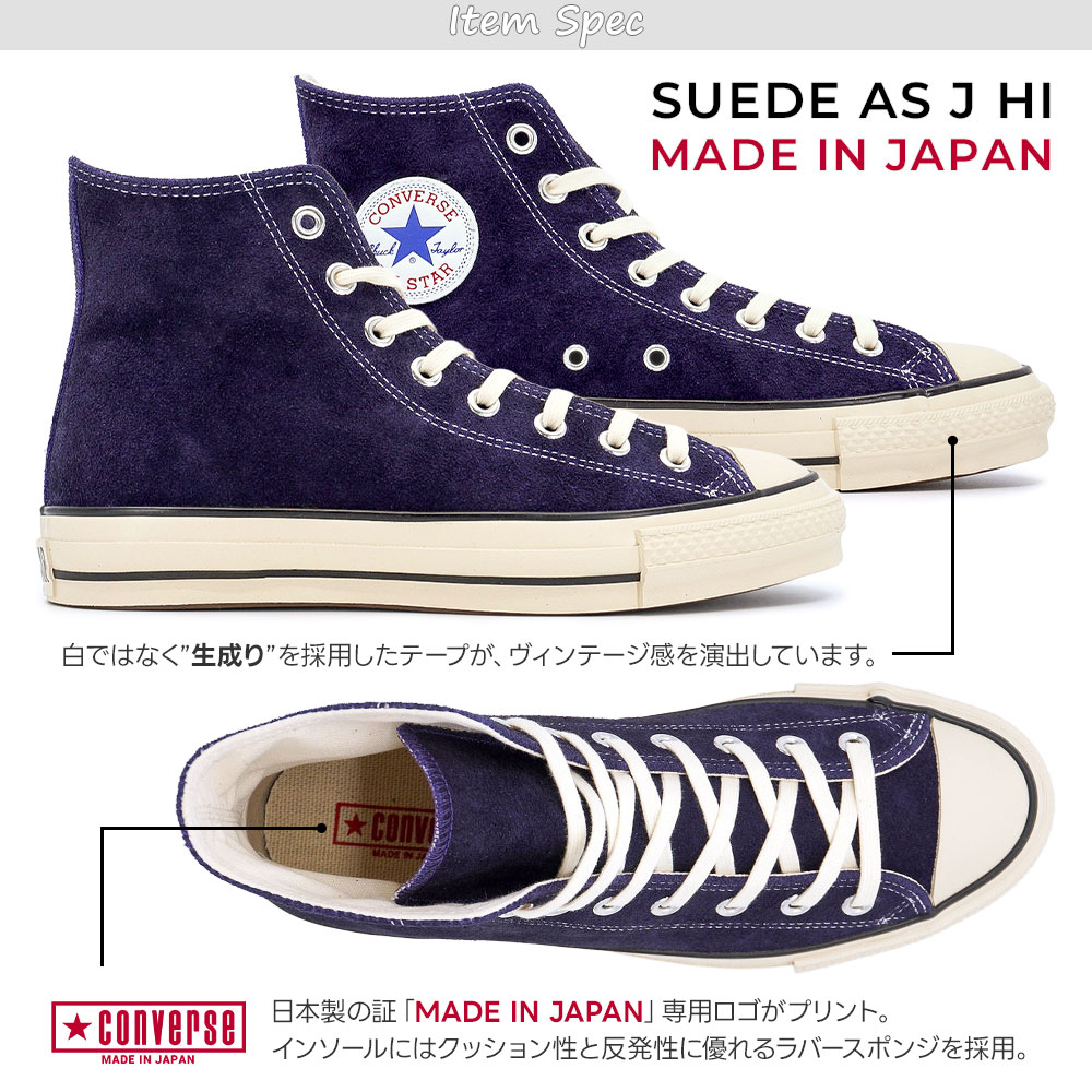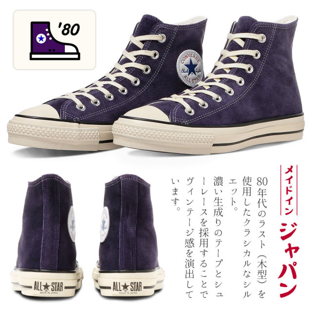 オールスターのMADE IN JAPANモデル。アッパーに上質な国産スエードを採用。