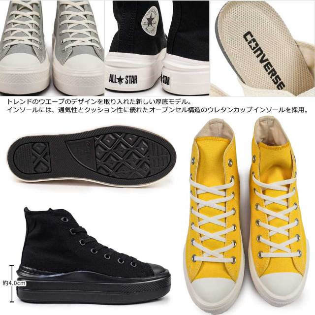 オールスター ライトのソールアレンジモデル。トレンドのウエーブのデザインを取り入れた新しい厚底モデル。