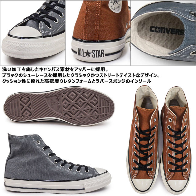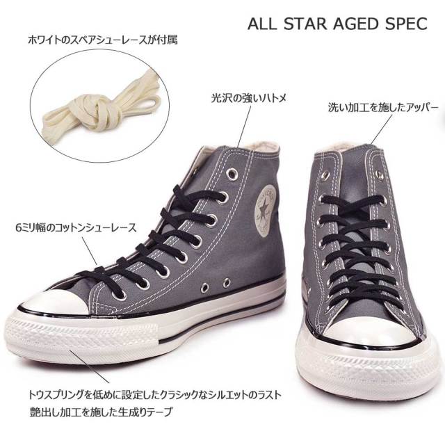 オールスター エイジドのカラーアレンジモデル。洗い加工を施したキャンバス素材をアッパーに採用。