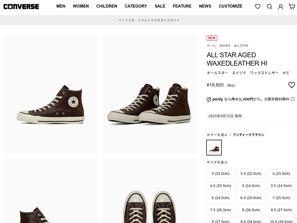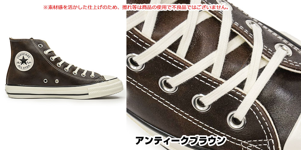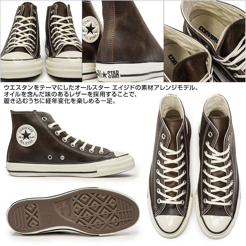 ウエスタンをテーマにしたオールスター エイジドの素材アレンジモデル。わずかにクラック感のあるエイジングしたような質感のレザーをアッパーに採用。