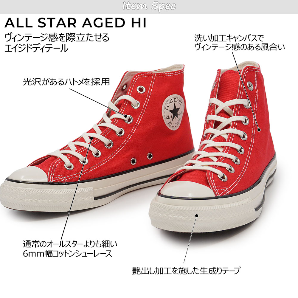 オールスター エイジドのカラーアレンジモデル。洗い加工を施したキャンバス素材をアッパーに採用。