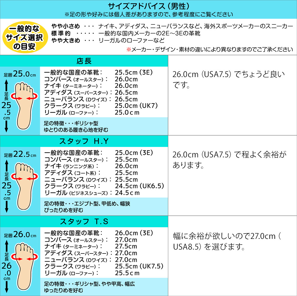 幅、サイズ感・・・オールスターは男性用(USAサイズ6以上)はやや小さめ女性用(USAサイズ5.5以下)は標準的大きさです。