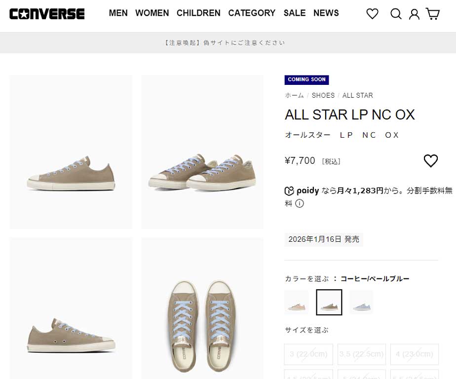 オールスターの薄底ソール、ディテールアレンジモデル。通常のオールスターより薄めに設計したラストにテープを低めに設定することで、すっきりとした薄底に仕上げたアイテム。