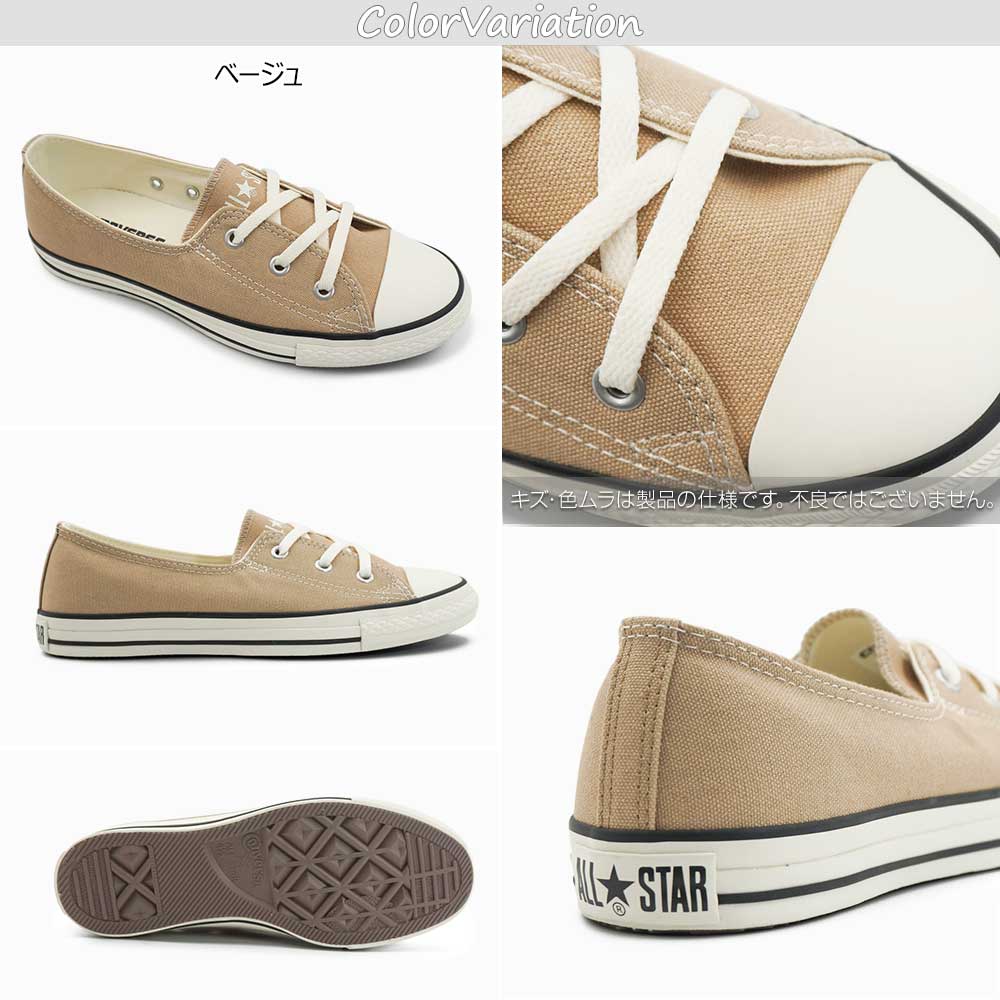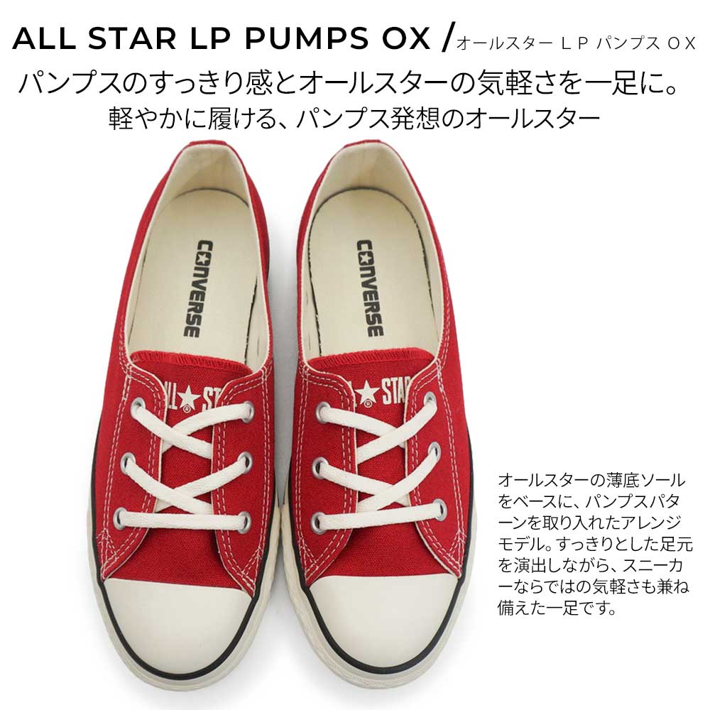オールスターの薄底ソールをベースに、パンプスパターンを取り入れたアレンジモデル。すっきりとした足元を演出しながら、スニーカーならではの気軽さも兼ね備えた一足です。アッパーにはキャンバス素材を使用し、軽やかでやわらかな印象に。アウトソールはラバー仕様で、デイリーに使いやすいバランスに仕上がっています。パンツスタイルにはもちろん、スカートやワンピースにも合わせやすく、カジュアルすぎず女性らしい足元を演出。脱ぎ履きのしやすさと見た目のすっきり感を両立した、普段使いに取り入れやすいコンバースです。幅、サイズ感・・・表記なし。通常のオールスターとサイズ感が異なりますのでご注意下さい。(下記スタッフのサイズアドバイス参照)