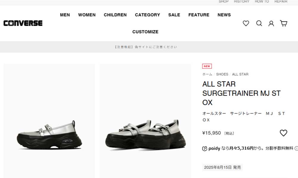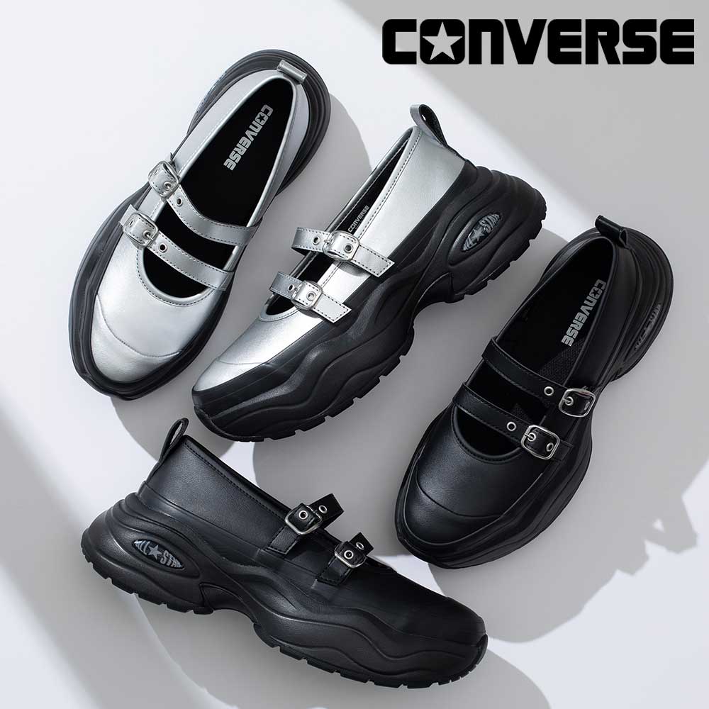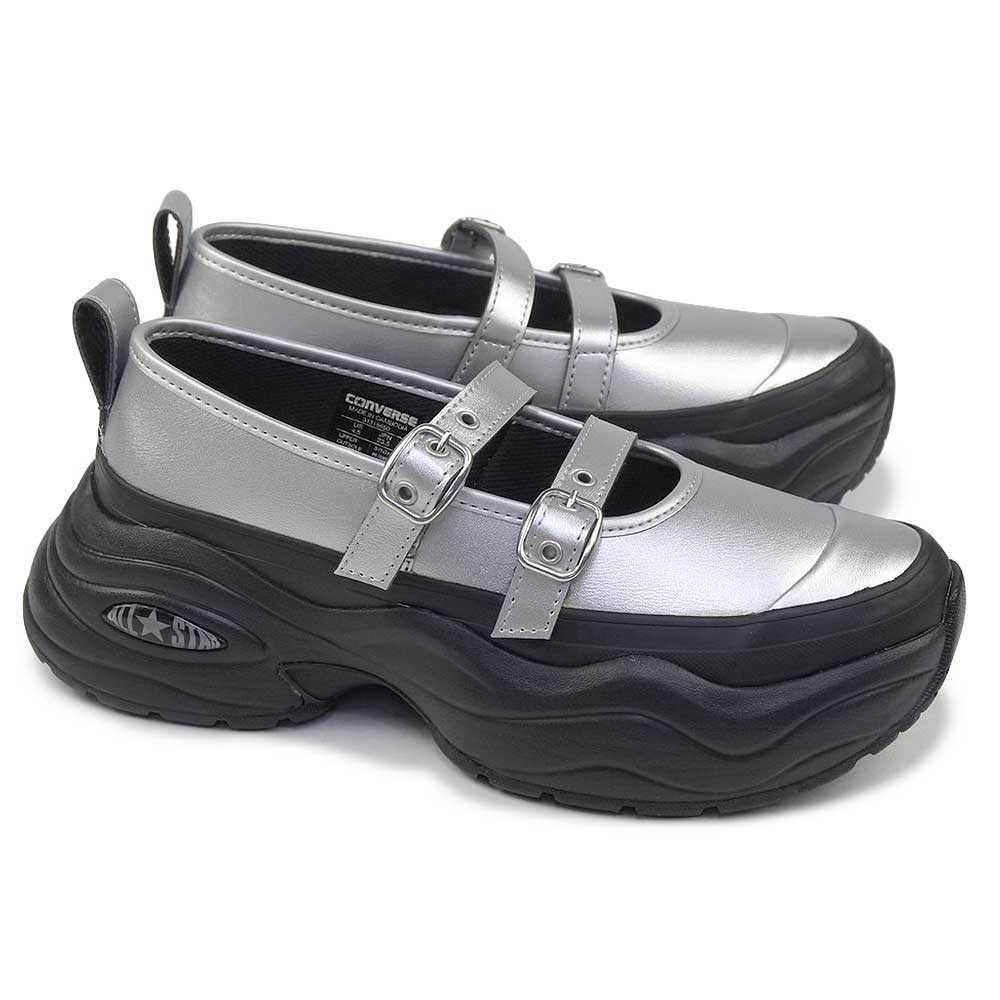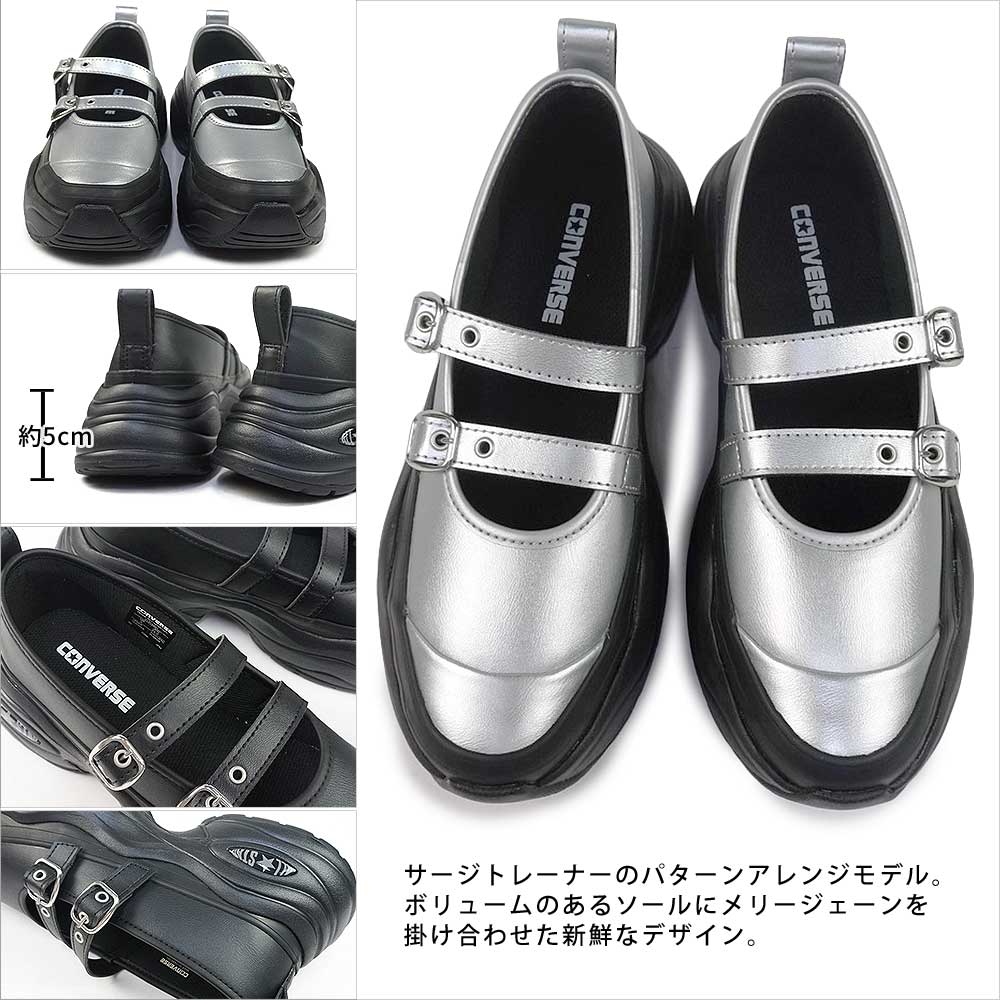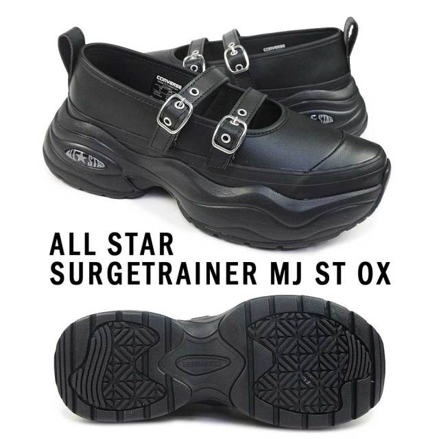 オールスターと90年代のトレーニングシューズをモチーフにしたボリュームのある厚底ソールを合体し、流線的でレトロスポーティな印象に仕上げたサージトレーナーのパターンアレンジモデル。ボリュームのあるソールにメリージェーンを掛け合わせた新鮮なデザイン。