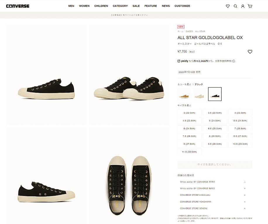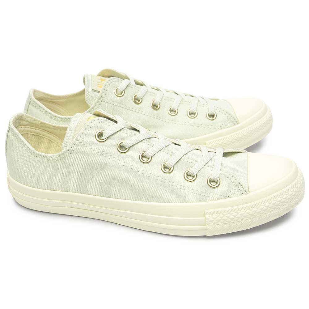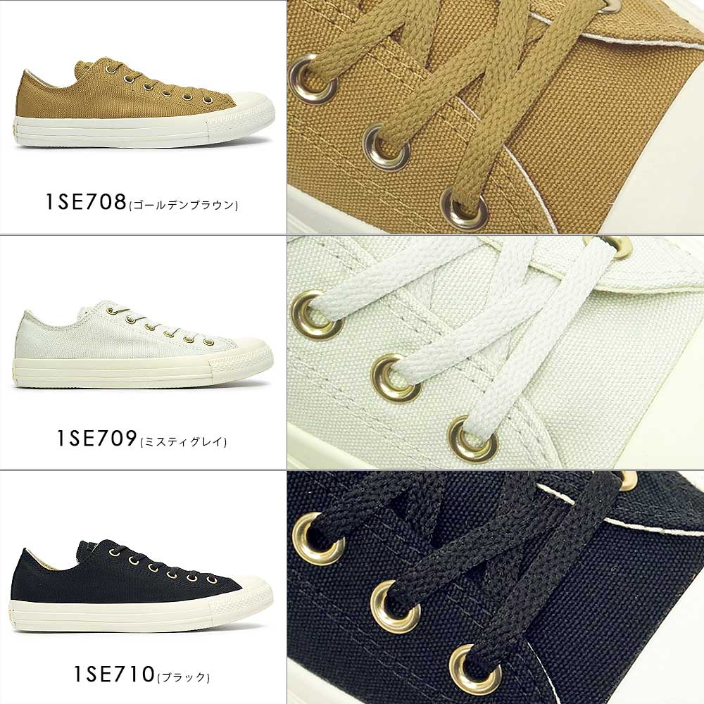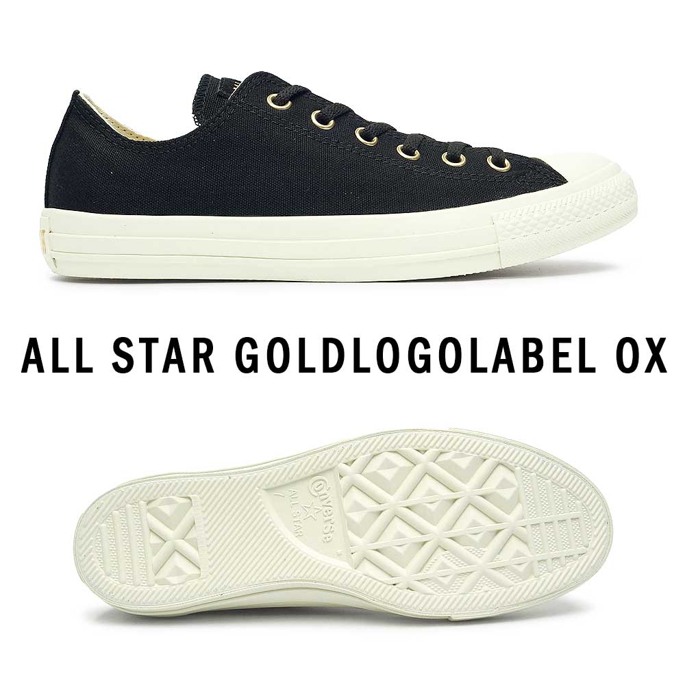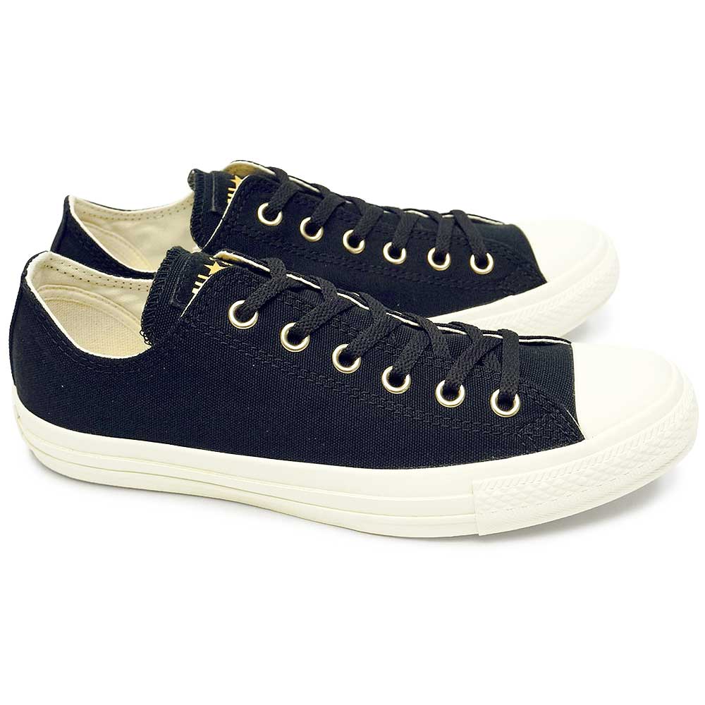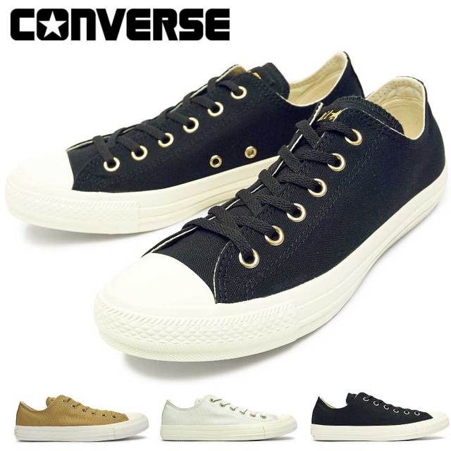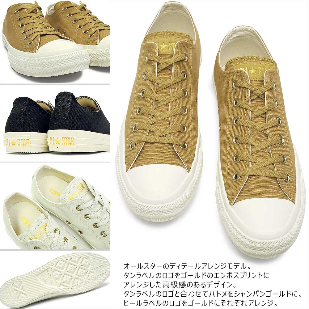 オールスターのディテールアレンジモデル。タンラベルのロゴをゴールドのエンボスプリントにアレンジした高級感のあるデザイン。