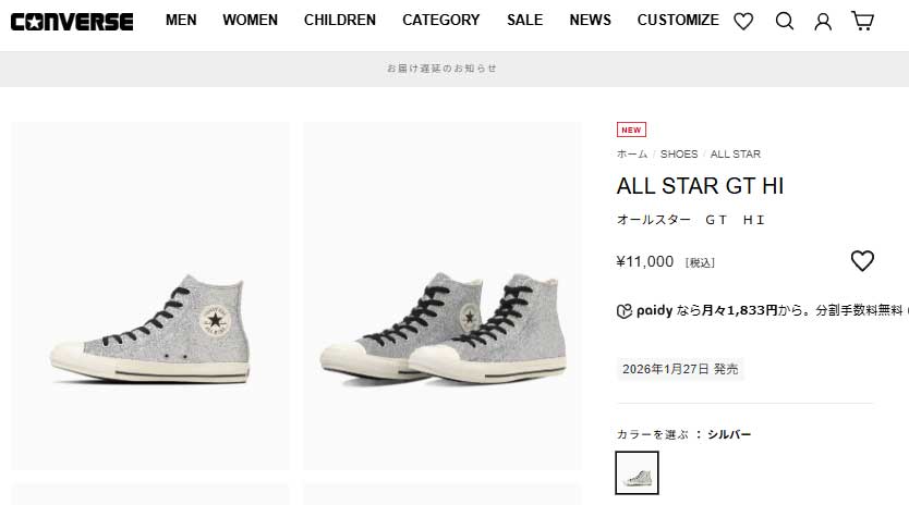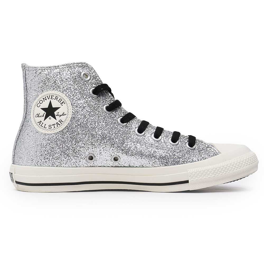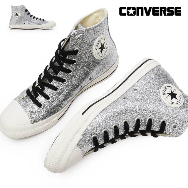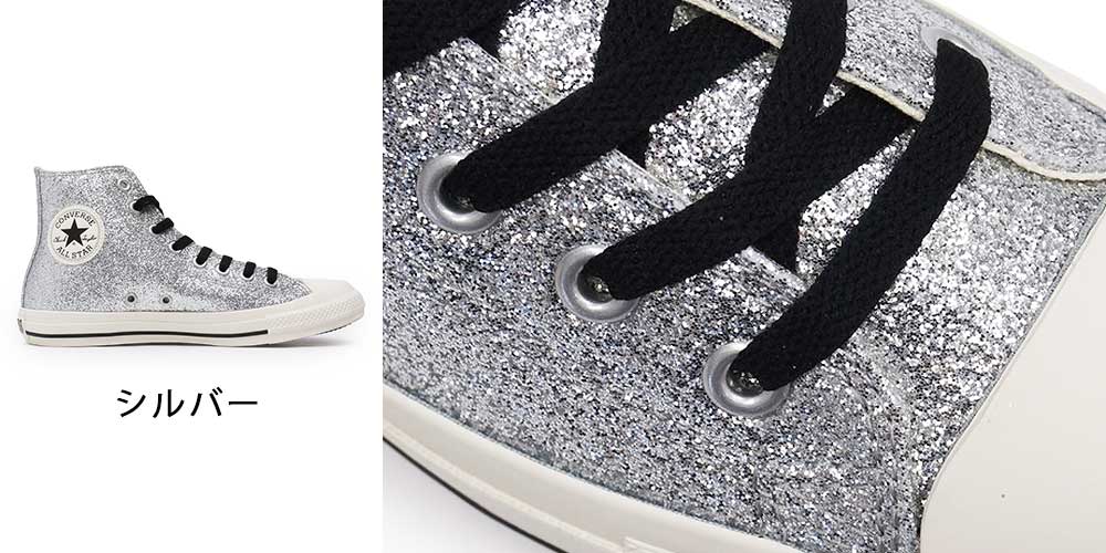 オールスターの素材アレンジモデル。アッパーに華やかなグリッター素材を採用。