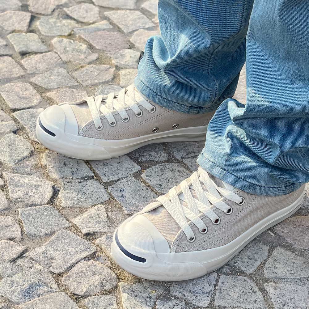 1935年に、バドミントンのワールドチャンピオン「ジャック・パーセル」が開発に関わり誕生した、シグニチャーモデルの先駆け的アイテム。つま先のラインは「スマイル」、ヒールラベルのデザインは「ヒゲ」と呼ばれ、今もなお多くの人に愛され続けている。キャンバスの定番カラーのローカット。フラットなアウトソールや取り外し可能な中敷きは快適な履き心地です。