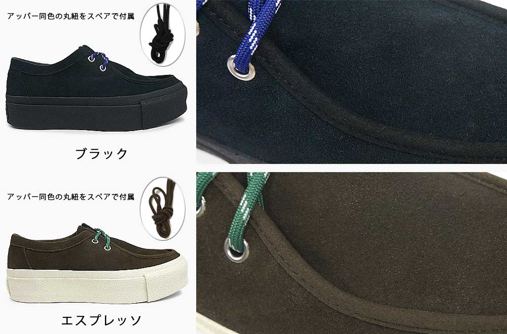 テープをクレープソール風の意匠にアレンジし、モカシンパターンを採用することでブーツライクに仕上げたデザイン。