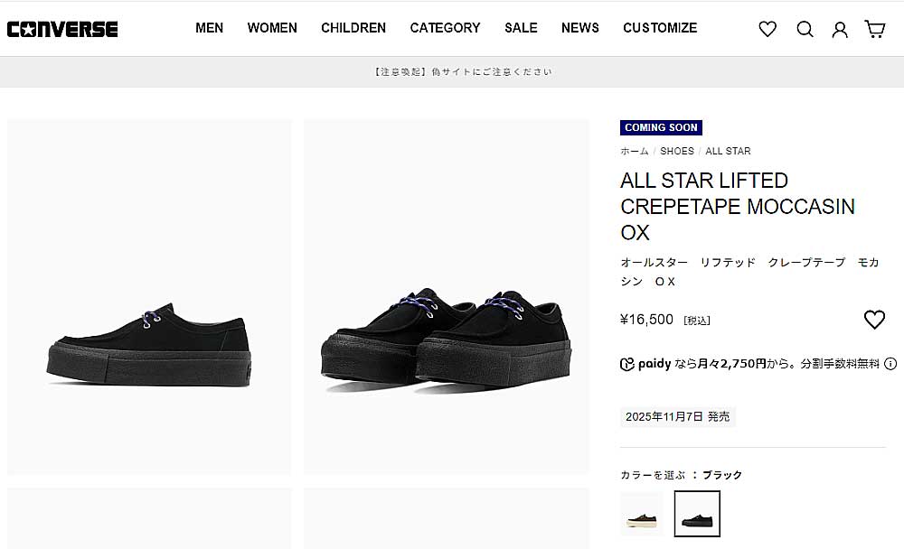 オールスター リフテッドのパターンアレンジモデル。ほどよい高さのソールを採用した厚底モデル。