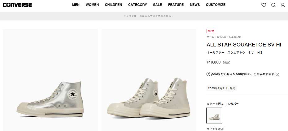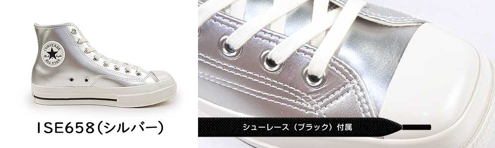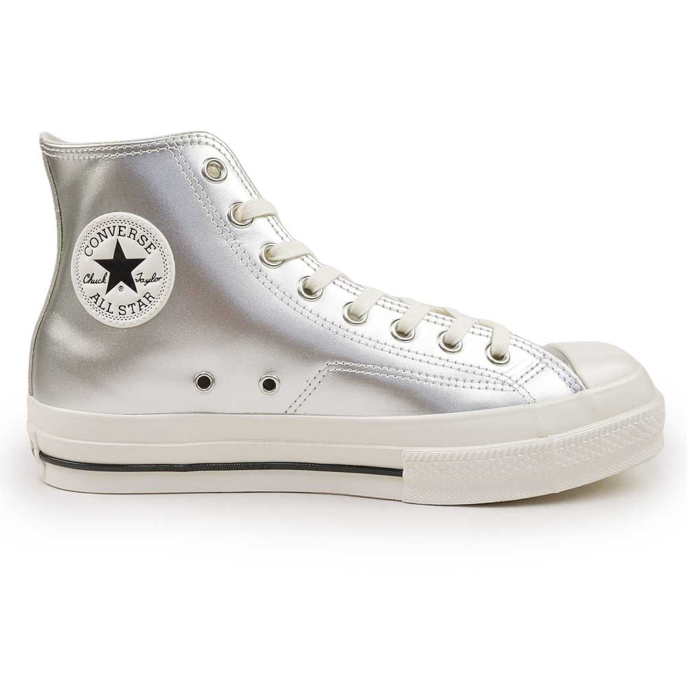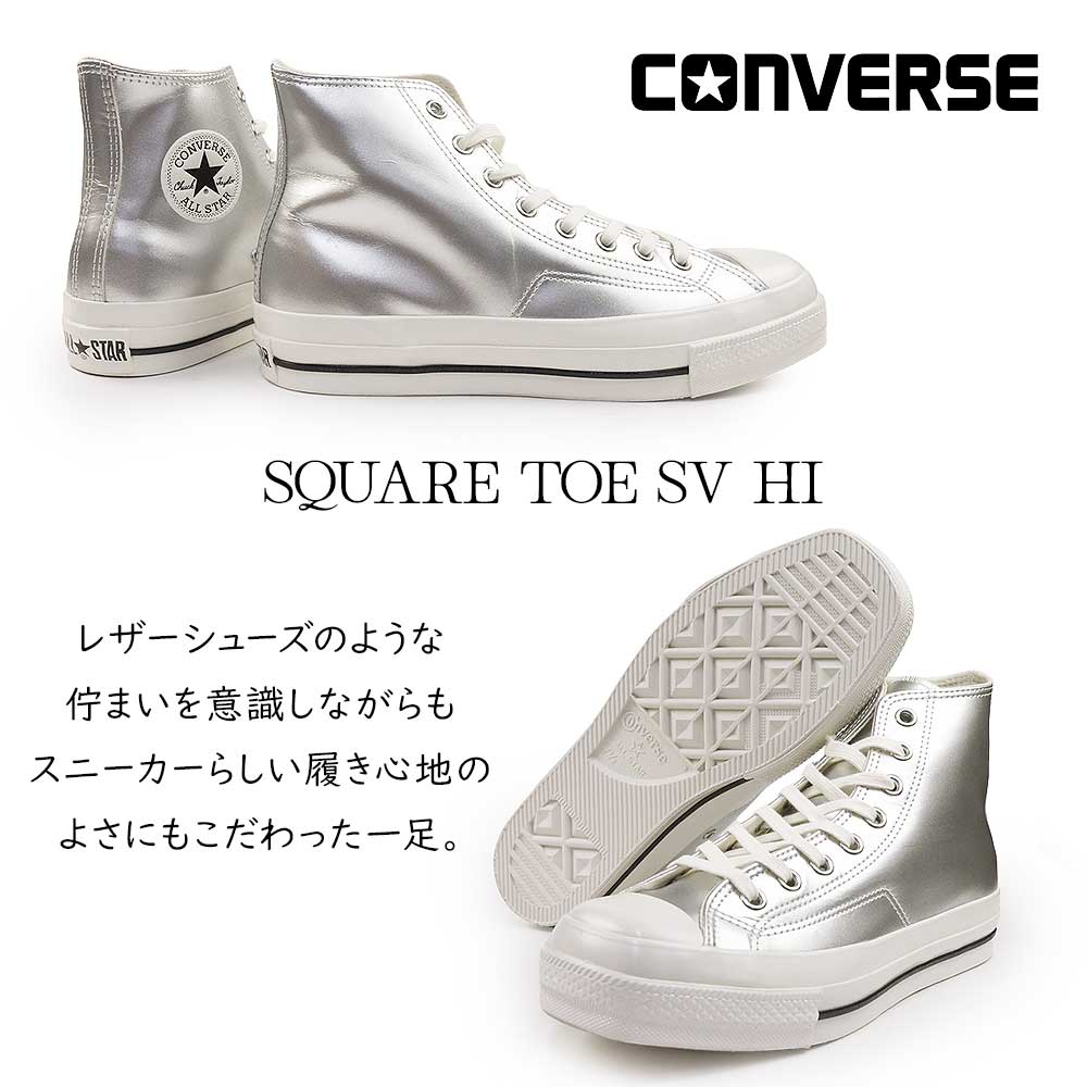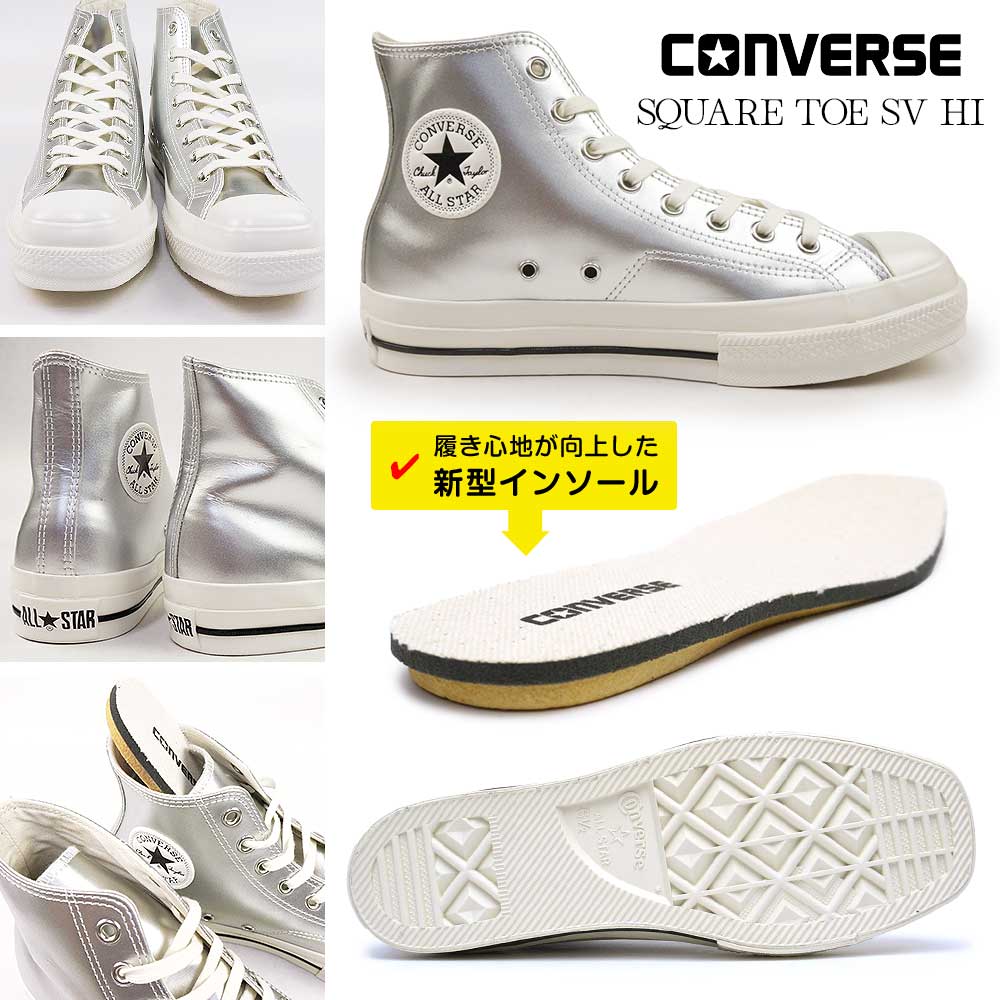 スクエアトウのレザーシューズをモチーフにしたオールスター スクエアトウの素材、カラーアレンジモデル。アッパーはシルバーのレザーを採用し、モノクロ仕様のアンクルパッチやラインを一本にしたテープ等のディテールにより、ミニマルにまとめたデザイン。