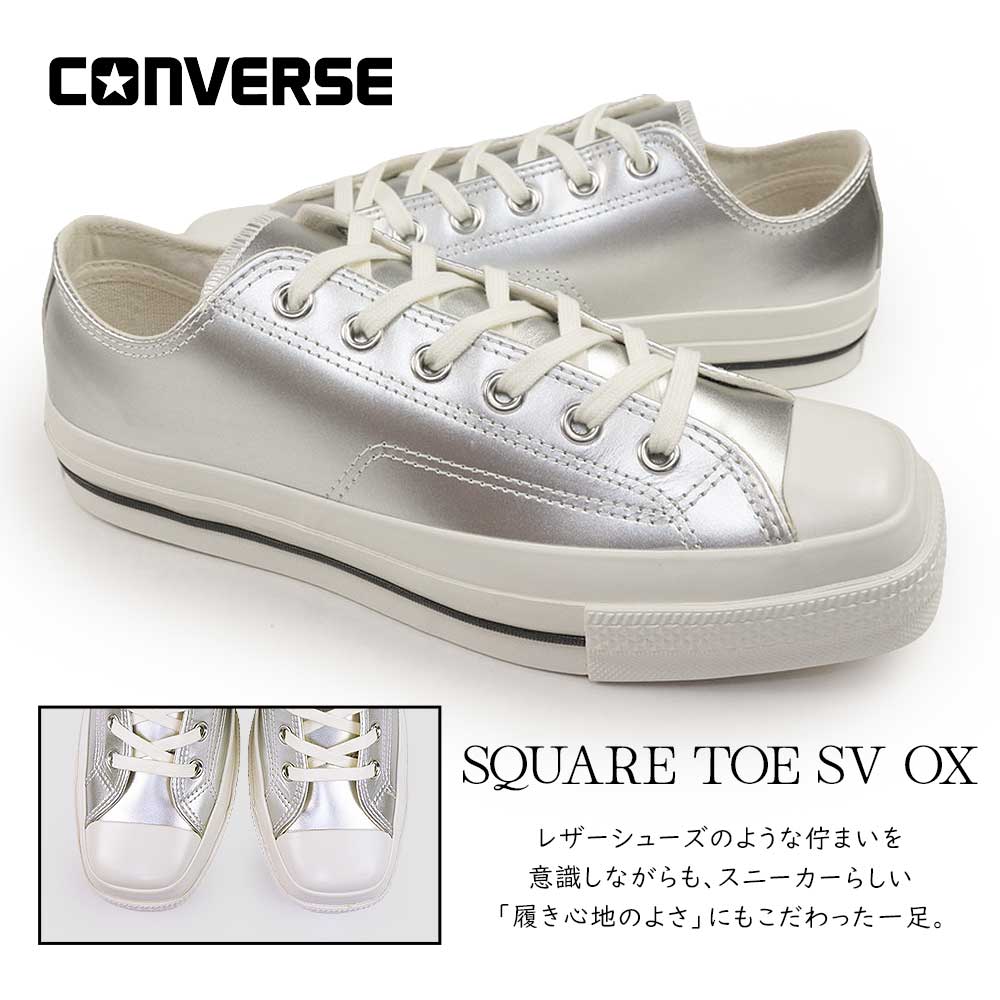 スクエアトゥスニーカー シルバー カジュアル ギフト プレゼント 1se659 お揃い 銀色 替え紐付き モード AS SQT SV OX
