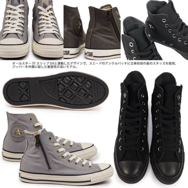 オールスターのパターン、ディテールアレンジモデル。オールスター ST スリップ OXと連動したデザインで、スエードのアンクルパッチに立体形状の星のスタッズを採用。