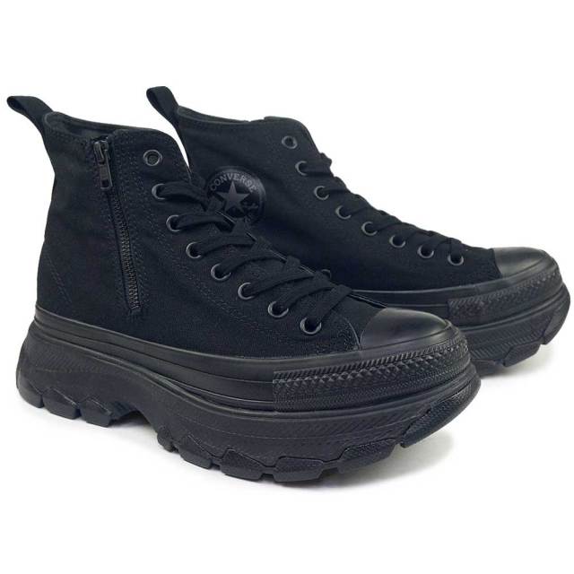 オールスターの定番スタイルに、トレッキングシューズをモチーフにしたボリュームのあるアウトソールを合体したトレックウエーブのパターンアレンジモデル。サイドにジッパーを加えることで、スムーズに着脱できる機能性をプラス。