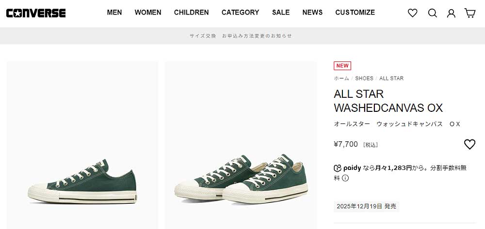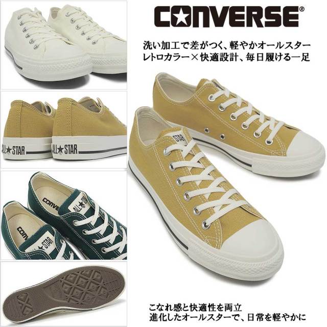 リニューアルスペックを採用したオールスターのディテールアレンジモデルアッパーに洗い加工を施し生成りのシューレースやテープを採用することで、こなれた印象に仕上げたデザイン