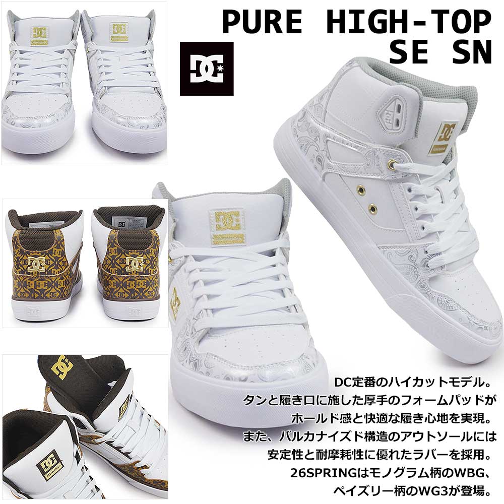 DCシューズ お揃い ギフト ボードシューズ プレゼント 誕生日 ユニセックス ペア ストリートファッション 通学 ホワイト ブラウン ゴールド 2026SS WBG WG3 モノグラム ペイズリー