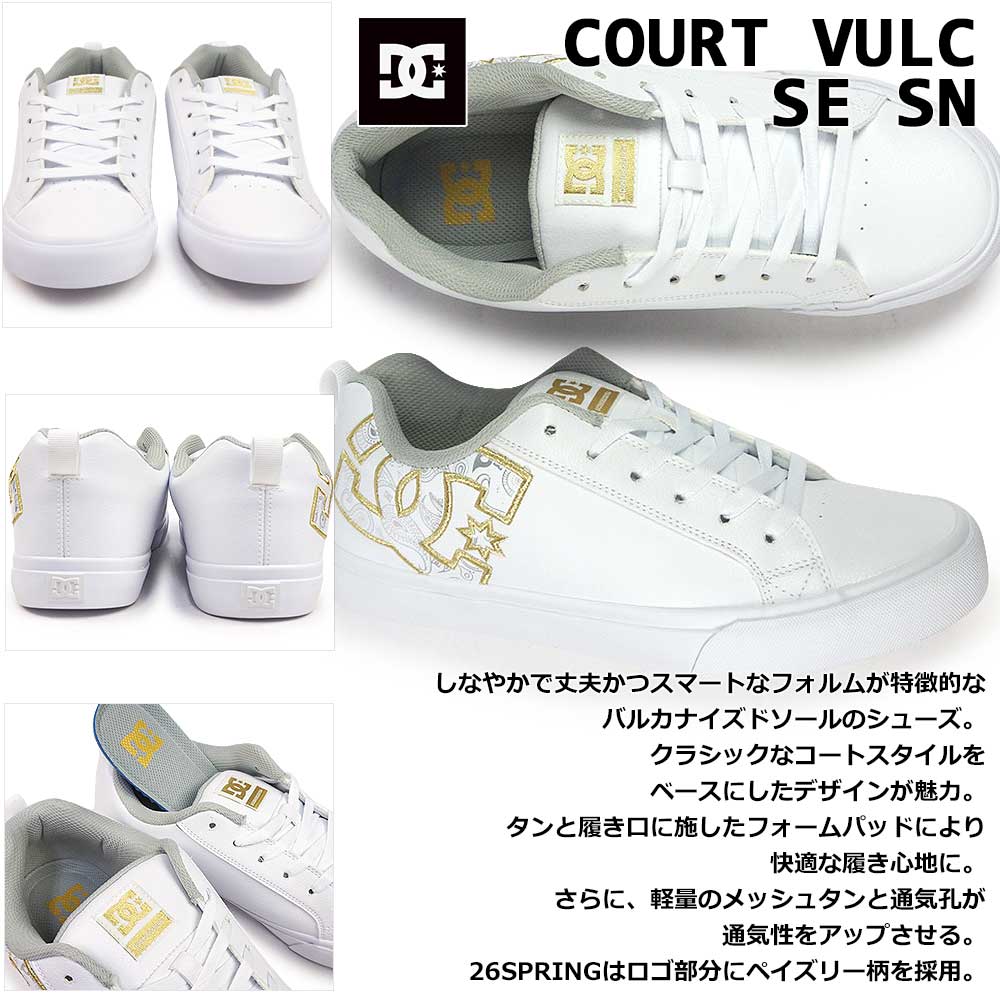 DCシューズ コートシューズ プレゼント リンクコーデ ペア 誕生日 クリスマス 白スニーカー ダンス ユニセックス お揃い ホワイト ゴールド ペイズリー ダンサー WG3 コートスニーカー