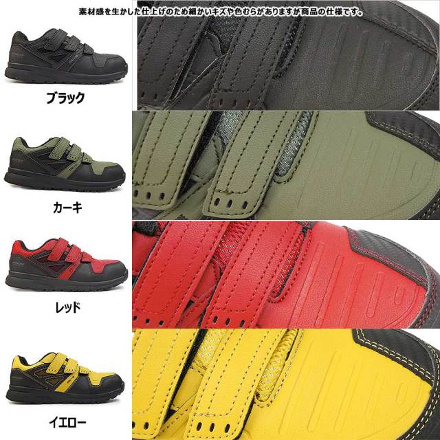 レッド ブラック カーキ イエロー 耐油 耐滑 軽量 鋼鉄先芯 スチール入り 安全スニーカー
