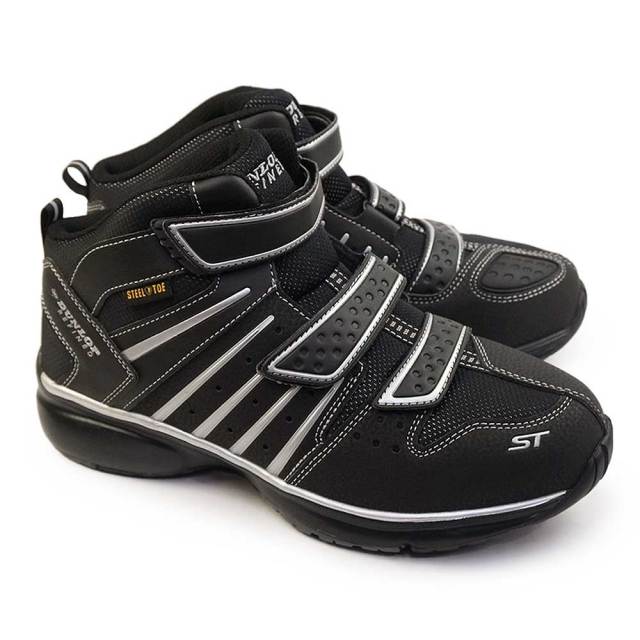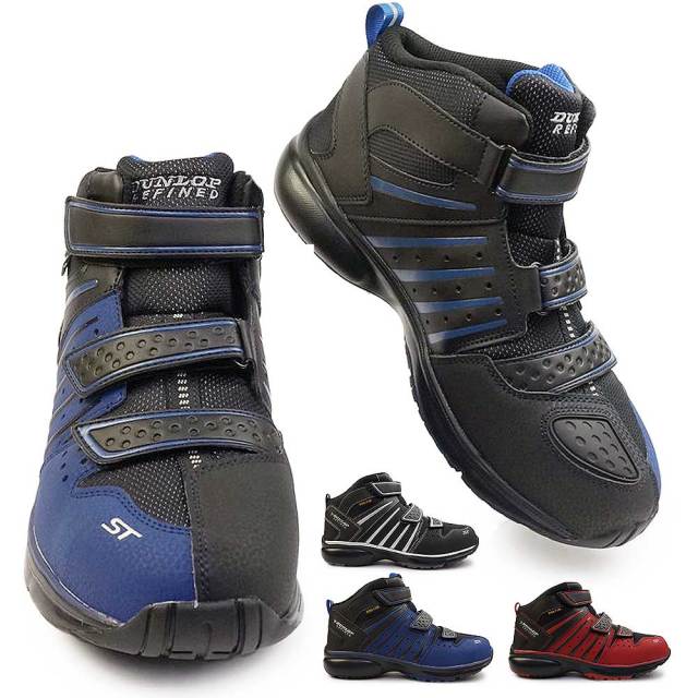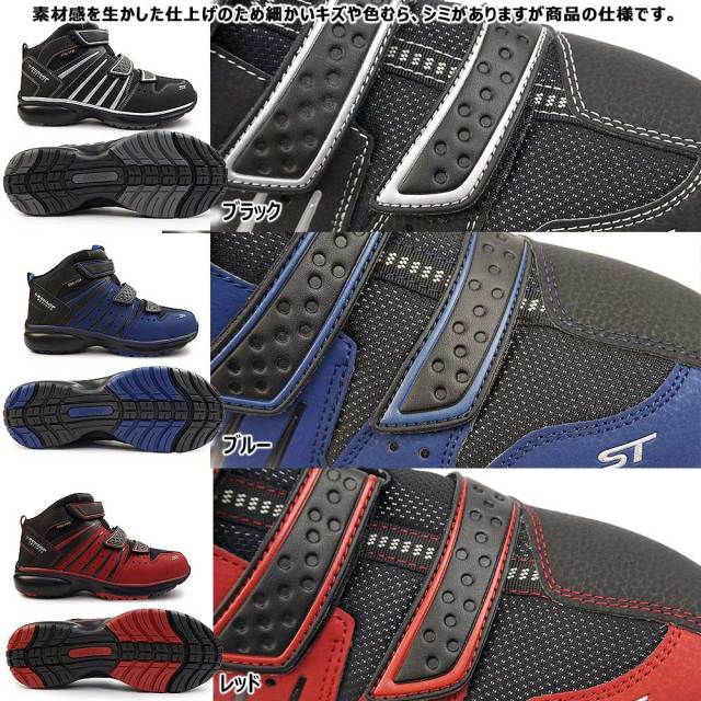 メンズ 幅広 4E ゆったり ハイカット ベルクロ マジック レッド ブラック ブルー 耐油 耐滑 軽量 鋼鉄先芯 スチール入り 安全スニーカー ギヤチェンジパッド バイカー
