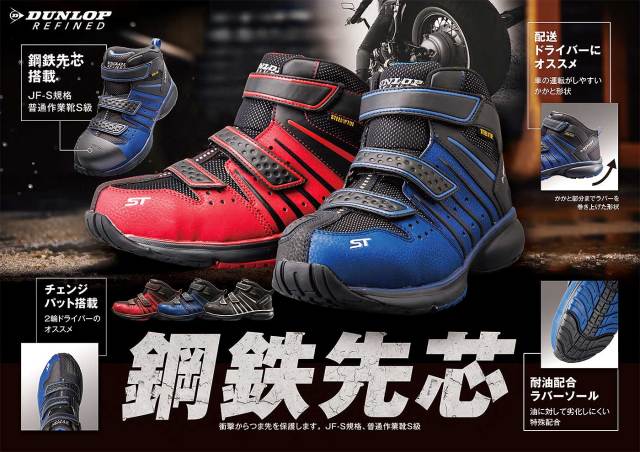 鋼鉄先芯で作業中の足元や足首までしっかり保護するハイカットスニーカータイプのセーフティーシューズ。特に二輪ドライバーや宅配ドライバー向けにチェンジパッド搭載で復刻。かかと部分を巻き上げたソール形状は車のペダル操作にも最適。3本の面ファスナータイプで着脱も容易。モータースポーツテイストで作業や普段履き、アウトドアにも最適です。取り外し可能のカップインソールでお手入れ楽々。油に対して劣化しにくい特性の耐油配合ラバーソールを搭載。デザイン性はモータースポーツテイストで、作業や普段履き、アウトドアにも適しています。幅、サイズ感・・4Eで幅広モデルですが標準んからややゆったりサイズです。(サイズアドバイス参照)