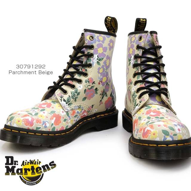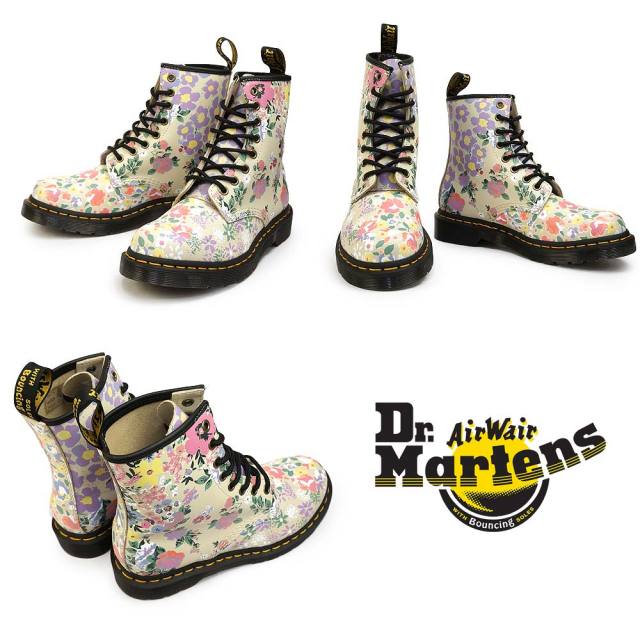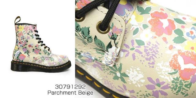 ドクターマーチンの代表モデル「1460 8ホールブーツ」をベースに、アーティスティックなフラワー柄がプリントされた春夏らしいショートブーツ。柔らかな色味のベージュカラーをベースに、過去のコレクションで登場した5つのフラワーパターンが優しい色合いでマッシュアップされた花柄が施されています。