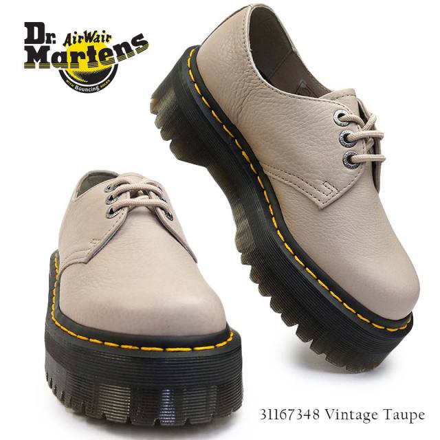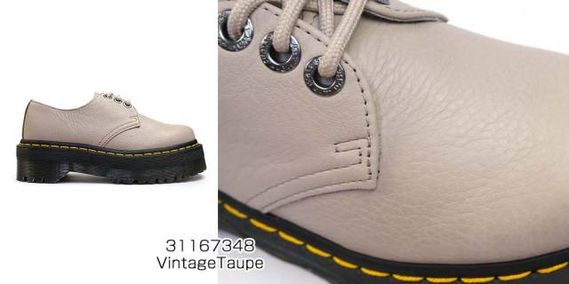 」シリーズより、落ち着いたトーンのトープカラーが印象的な3ホールシューズ。定番3ホールと厚底を組み合わせた1461 QUAD 2」は、ボリュームのあるシルエットとレトロな印象のトープカラーがシンプルながらもインパクトを与えます。